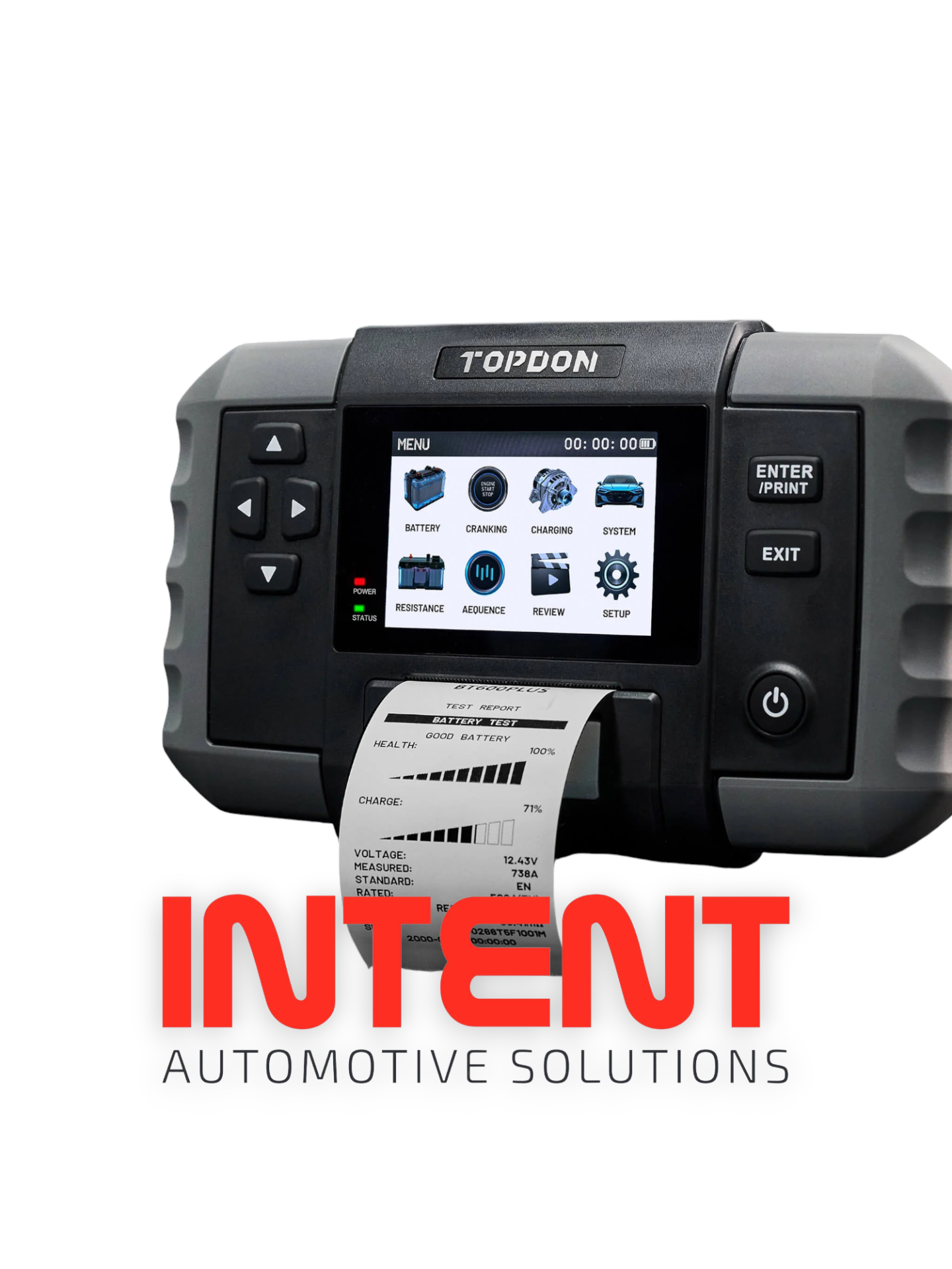 Az INT-BT600 Plus magában foglalja a legfejlettebb akkumulátor-tesztelési technológiát és fordított polaritás védelmet alkalmaz. A készülék pontos információkat nyújt az akkumulátor állapotáról azáltal, hogy gyorsan, hatékonyan és pontosan azonosítja az akkumulátort és a töltési problémákat. Könnyen kinyomtathatja és megoszthatja az eredményeket a beépített hőnyomtatóval.