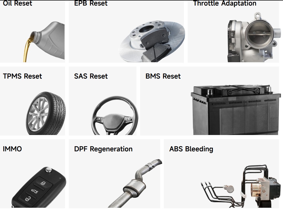 Több mint 41 alapvető visszaállítás és beállítás szolgáltatáshoz való hozzáféréssel felkészülhet arra, hogy minden karbantartási feladatot könnyedén elvégezzen. A rutineljárásoktól, mint például az olaj- és SAS- visszaállítás/adaptációs beállítás, a speciális funkciókig, mint például a fojtószelep-beállítás és -kalibrálás, ezek az eszközök lehetővé teszik, hogy könnyedén kivételes szolgáltatást nyújtson.