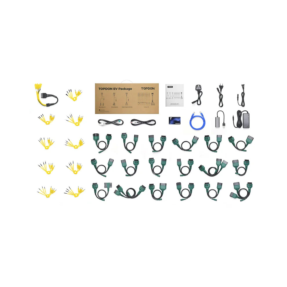 A TOPDON EV csomagja speciális diagnosztikai munkákkal látja el az autószervizeket az elektromos járművekhez. Az EV csomag 2 év ingyenes frissítést és lefedettséget tartalmaz 74 járműre és szoftverrendszerre (beleértve a Teslát is). Kompatibilis