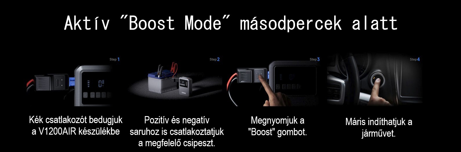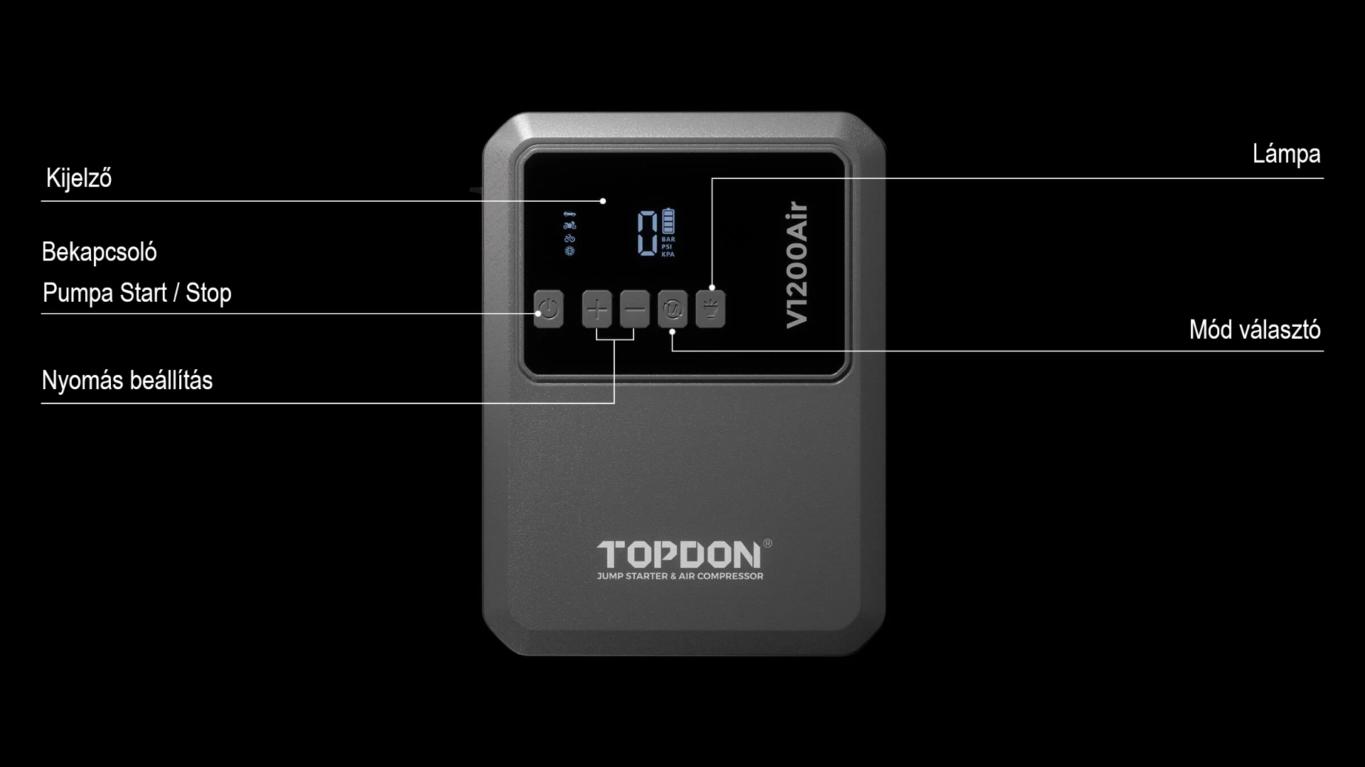5 intelligens felfújási móddal rendelkezik a gyors és egyszerű gumiabroncs-felfújáshoz. Az 5 rétegű biztonsági védelemmel és a nagy fényerejű, 3 üzemmóddal rendelkező LED-lámpával felszerelt V1200Air a nélkülözhetetlen a mindennapokban.